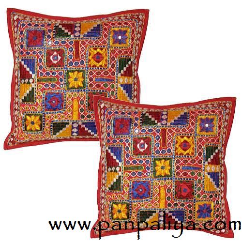ETHNIC INDIAN HANDMADE EMBROIDERED MIRROR WORK CUSHION COVERS