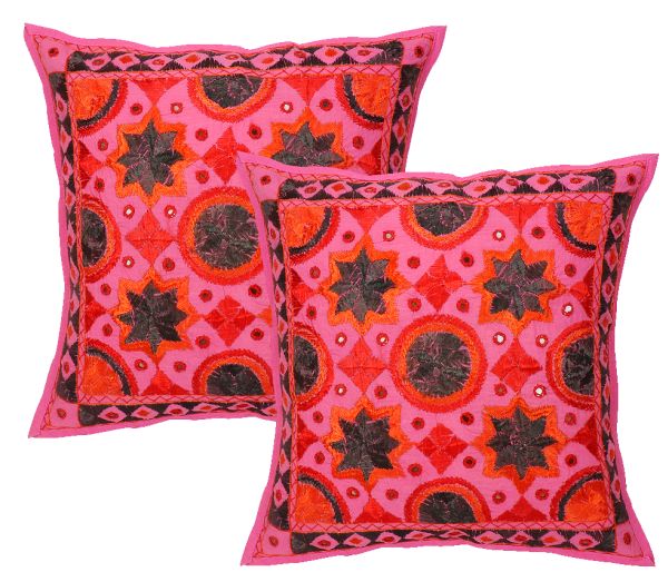 VINTAGE SOFA PILLOW MIRROR WORK CASE CUSHION COVER EMBROIDERED INDIAN COTTON