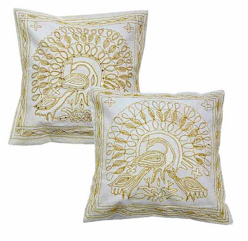 CHARMING INDIAN WHITE HANDMADE INDIAN CUSHION COVERS FROM JAIPUR INDIA