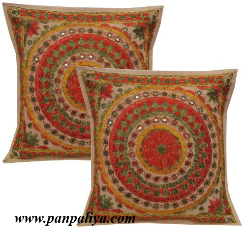 Decorative handcrafted ethnic Indian Hand Embroidered cushion covers at discount prices