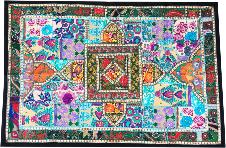 Vintage Indian Tapestry Embroidered Sari Patchwork Wall Hanging India Home Decor
