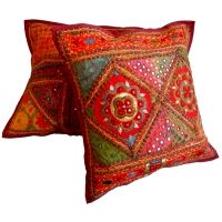 Panpaliya presents Wholesale Ethnic Indian Tribal Creative Handmade Patch Work, Applique work Hand Embroidery & Mirror work Cushions Cover is made using cotton fabric. It Contains Attractive Mirror Work Patch work. These beautiful cushion covers will add warmth, color and style to any room in your home! Magnificent handmade and exquisite work and Embroidery work create visibly stunning and beautiful cushion pillow covers...If you're looking for something to add some ethnic style, color, and sparkle than look no further. Get these amazing pillow covers for a price you won’t find in any store!!!