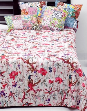 BIRD PRINT KANTHA QUILTS HANDMADE TROPICANA QUILTS