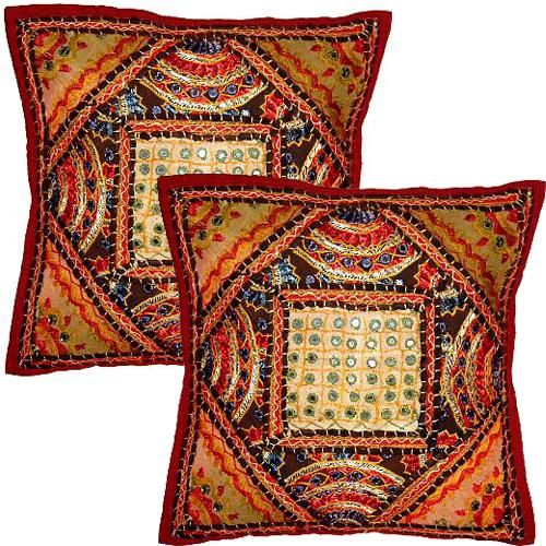Cushion covers with antique and contemporary patch work and thread work. Available in set of 2 and set of 5