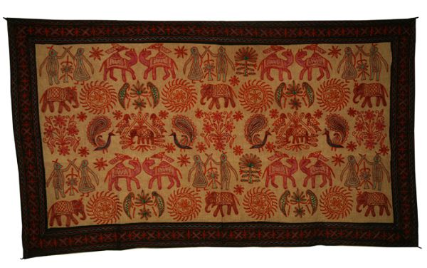 Pretty Traditional Figure Embroidered Tapestry/Wall Table runner with Mirror Work