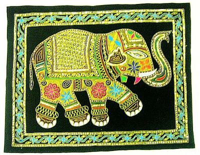 GOLDEN THREAD WORK HANDCRAFTED HANDMADE ELEPHANT WALL HANGINGS ON VELVET FABRIC