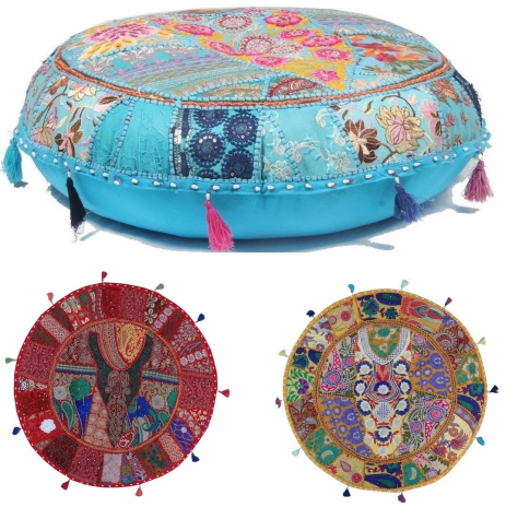 Pillow Ottoman Poof, Traditional Indian Home Decor Cotton Cushion